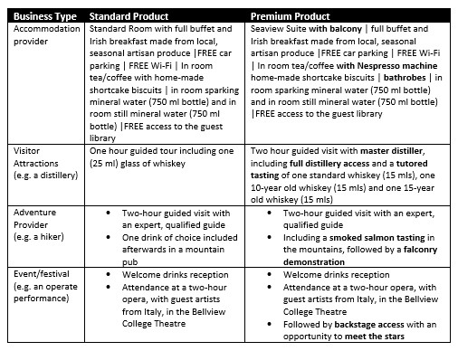 Many tourism businesses begin by bringing to market a standard saleable experience offering and then expand into diverse offerings including premium offerings as highlighted: